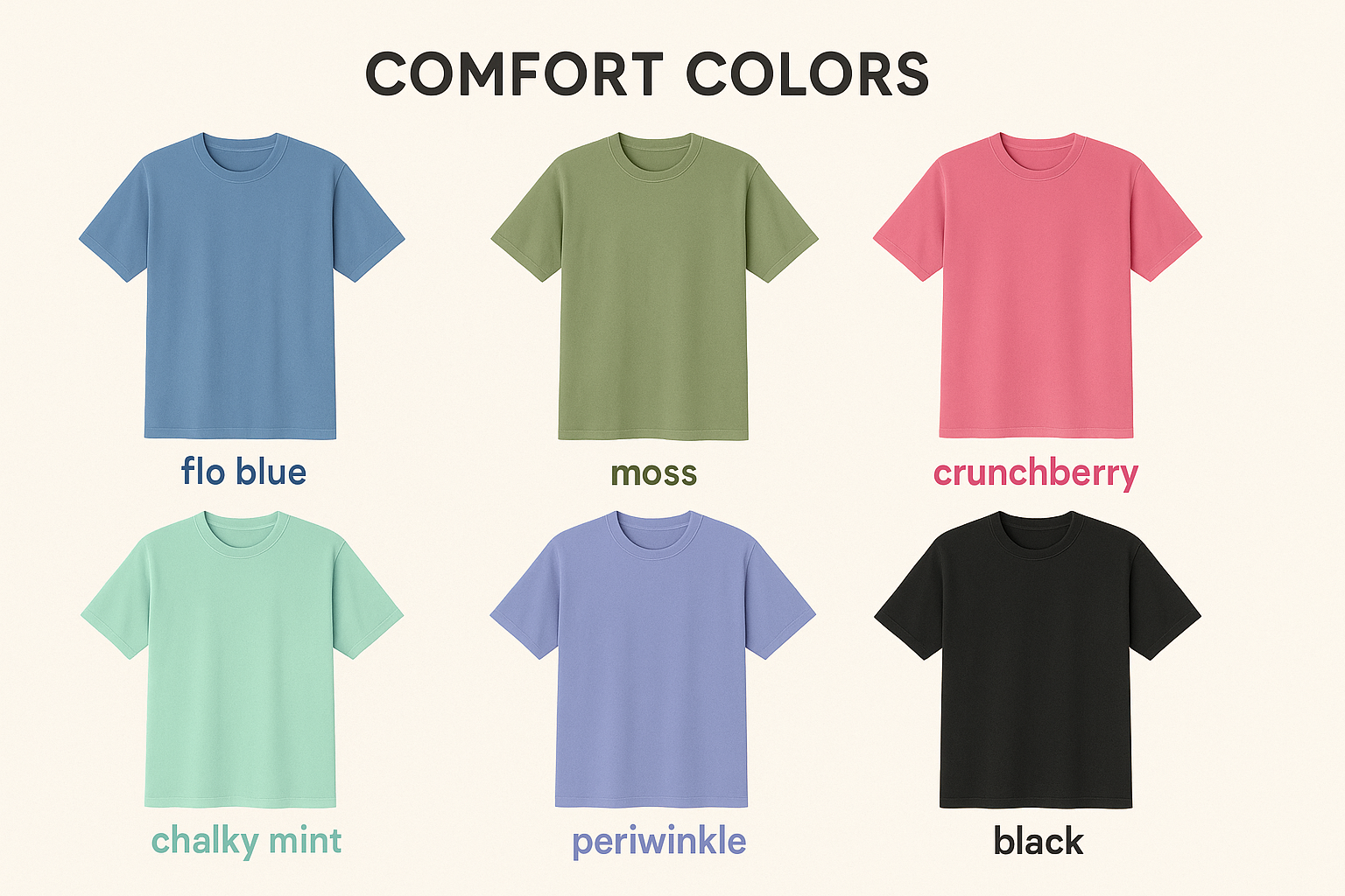 ✨ These shirts are on the trendy, high-quality Comfort Colors brand — soft, durable, and always stylish!